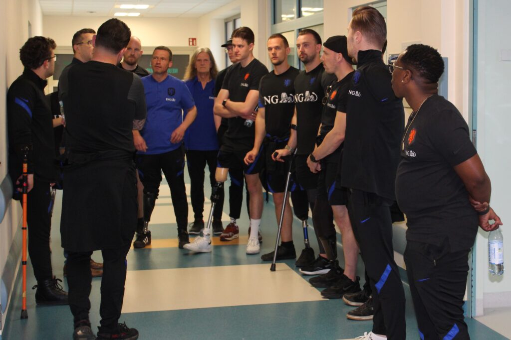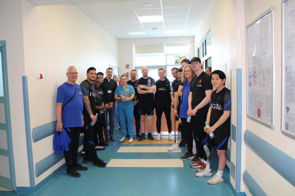 W dniach 6-7 kwietnia 2024 r. Stadion Prądniczanki Kraków stał się areną piłkarskich rozgrywek w AMPFUTBOLU. W ramach Amp Futbol Kraków Cup biało-czerwoni zagrali sparingowe mecze z Holandią i Włochami. Te zawody były ważnym sprawdzianem dla polskiej kadry ampfutbolu przed czerwcowymi mistrzostwami Europy. Przy tej okazji postanowiliśmy zaprosić jedną z drużyn do odwiedzenia naszych pacjentów. Na zaproszenie naszej Fundacji odpowiedziała drużyna „Oranje”, czyli Holendrów. Pomimo planowanego wylotu do Amsterdamu w poniedziałkowe popołudnie, Holendrzy przyjechali do nas do Szpitala w godzinach rannych. To były piękne emocje i chwile spędzone z naszymi pacjentami z Oddziału Ortopedii oraz Neurochirurgii. Nie zabrakło pamiątkowych wspólnych zdjęć, autografów oraz wzajemnego opowiedzenia sobie historii o swoich wypadkach i problemach zdrowotnych. Nasi mali pacjenci byli pełni podziwu dla piłkarzy z Holandii, którzy pomimo utraty ręki czy nogi, nie poddali się i postanowili iść dalej dzielnie przez życie, realizować się w ukochanym sporcie i jeszcze reprezentować swój kraj na arenie międzynarodowej. Pięknie dziękujemy całej ekipie Holandii za poświęcony czas i pięknie spędzone chwile w naszym szpitalu.
