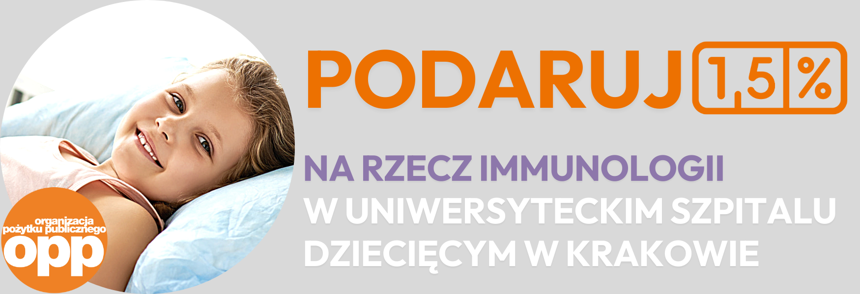Aby przekazać 1,5% podatku Fundacji Uniwersyteckiego Szpitala Dziecięcego w Krakowie „O Zdrowie Dziecka” na rzecz immunologii należy w odpowiednim miejscu formularza wskazać naszą Fundację: podać numer KRS: 0000 123 750 oraz cel szczegółowy: IMMUNOLOGIA.